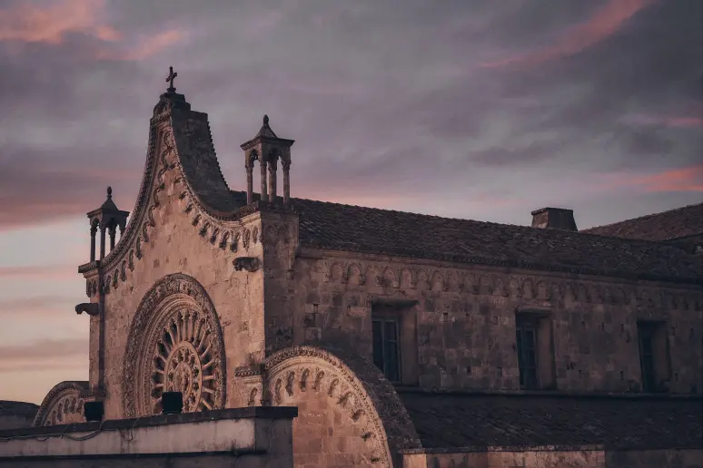 The absolute protagonist of the façade is the rose window, one of the largest in the world, richly decorated with three concentric circles and figures from the Christian tradition. The external structure is very particular because the frame of the pediment is rich in friezes and ornamental motifs. The portals of the church are introduced by three lunettes decorated with truly unique details. Inside the church, you can enjoy a good dose of light thanks to the large rose window. The three naves are separated by three orders of columns. In the central nave, it is possible to admire a frescoed and richly decorated ceiling.